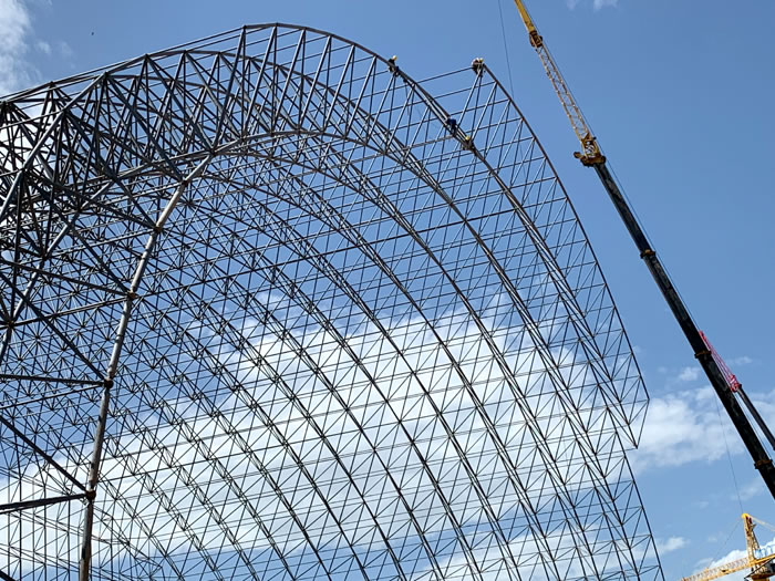 (2)网架加工前应对现场尺寸进行复测,确认无误后方可进行加工、安装;网架制作、运输、安装应遵守《空间网格结构技术规程》JGJ7-2010、《钢网架红桥螺栓球节点》JG/T 10-2009、《钢网架红桥螺栓球节点用高强度螺栓》 GB/T 16939-2016、《红桥钢结构红桥工程红桥施工规范》 GB50755-2012、《红桥钢结构红桥工程施工质量验收标准》 GB50205-2020。